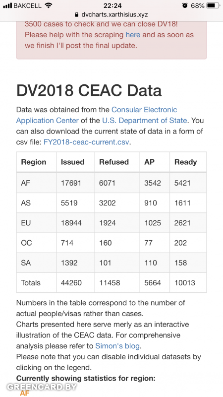 Я не знаю про какой вы говорите файл. Единственный источник данных, который я знаю, это цифры добытые из CEAC вот здесь https://dvcharts.xarthisius.xyz/ceacFY18.html Там и написано: Totals Issued 47806. Обновление за 10/03. Но, учитывая как эти данные "майнятся", скорее всего в реальности некоторое количество (пару сотен?) виз не успело попасть в выборку. Насколько я помню, глобальный лимит 50к, а не 55к, т.к. никто не обещал, что отдадут в общий пул 5к от накары. Иногда они это делают, иногда нет. Вы правы, что по глобальному лимиту не раздали все визы, которые могли. Но это касается африки и азии. Европе, наоборот, перепало чуть больше, чем ожидалось.
