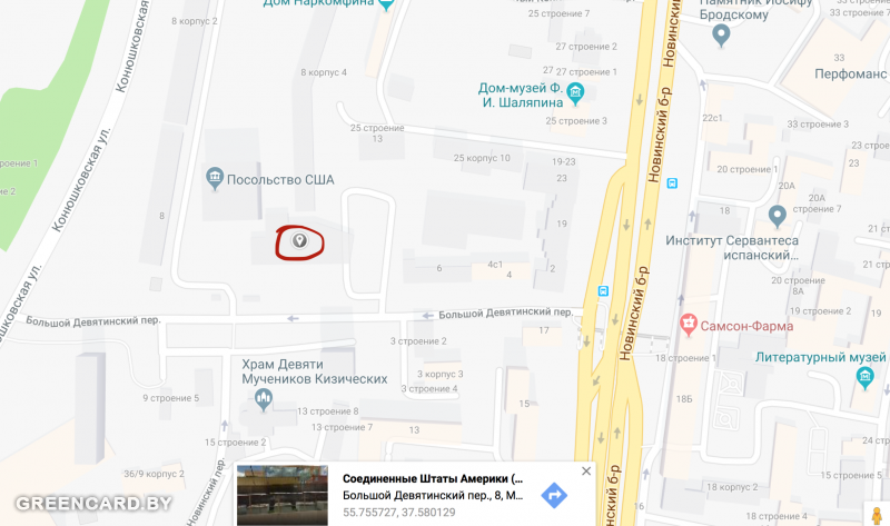 ребята а где вход в посольство в москве? говорят что вход с новинского, но там же с девяткинского есть свой большой вход?