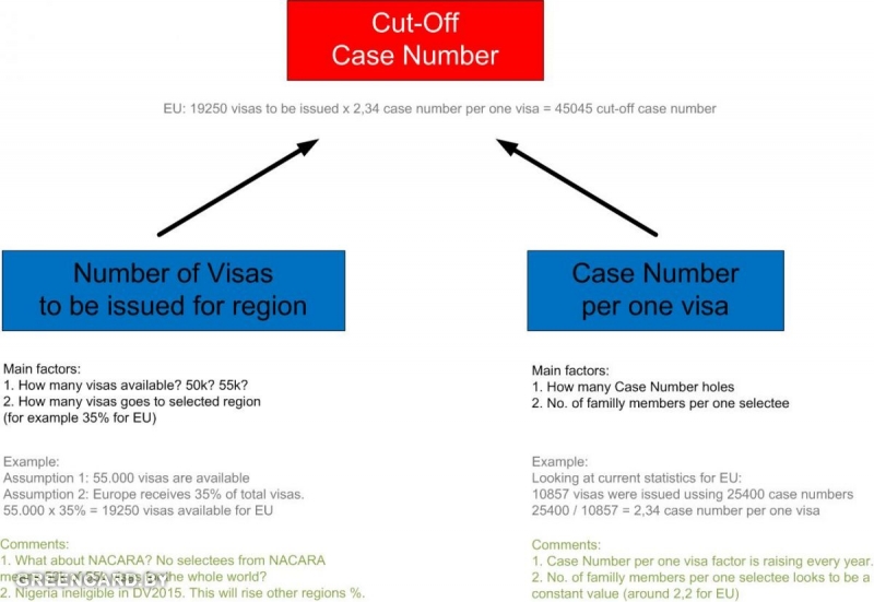 Так что никакую Нигерию я думаю даже в расчет можно не брать. В 2015 максимальная плотность в Европе доходит до номера - 45000. Есть 2 варианта развития событий: 1) в 2015 было уменьшено количество выигравших и в связи с этим номер упал с 54000 до 45000, значит в 2014 номера до 45000 на 90% должны проходить. 2) в 2015 количество выигравших осталось на том же уровне примерно или даже возросло, тогда улучшился отсев, то есть примерно 45000 номер соответствует 45000 выигравших, как и было раньше. В этом случае в 2014 проходят почти все номера (всегда есть вероятность нехватки виз) и в 2015 проходят все номера. Из-за увеличившейся квоты на Европу до 20000. Есть еще 3 вариант - бредовый, что они 2 раза выбрали столько много выигравших Европе, чтобы специально много не попали на интервью.