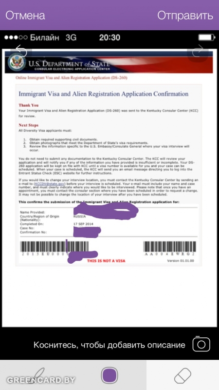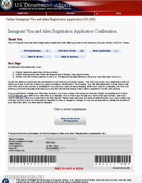 это начальная страница, в которой указано сколько человек имеет право притендовать на визу и в которой еще можно добавить... После заполнения анкеты выходит страница, в которой указано на какой адрес электронной почты можно отправить подтверждение о заполненной анкете