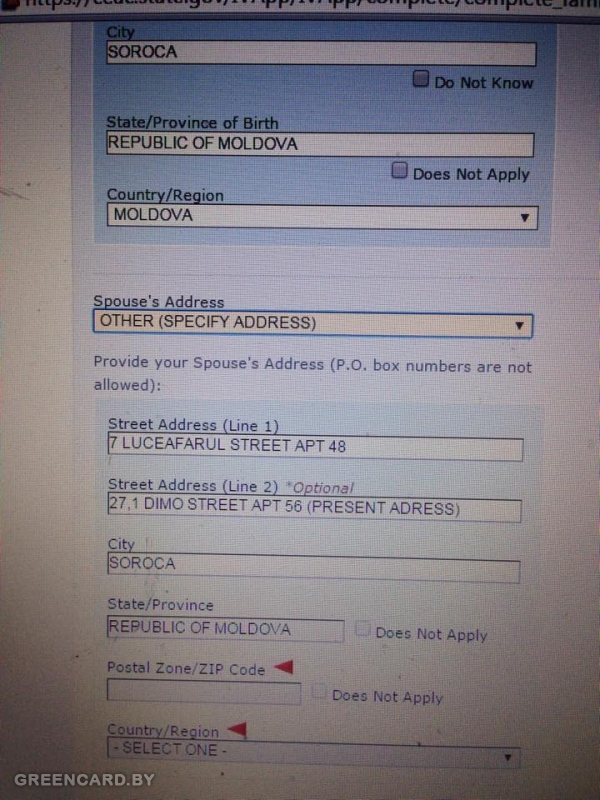 Друзья СОС! в разделе анкеты где инфо о супруге возник вопрос! там на голубом фоне инфо о месте рождения где указывается город край и страна .ОН РОДОМ С ДРУГОГО ГОРОДА, А СЕЙЧАС ЖИВЕМ В МОЕМ. И ниже запрашивают ЕГО адрес с вариантами ответа : такой же как нынешний, адрес в сша или Другой.
