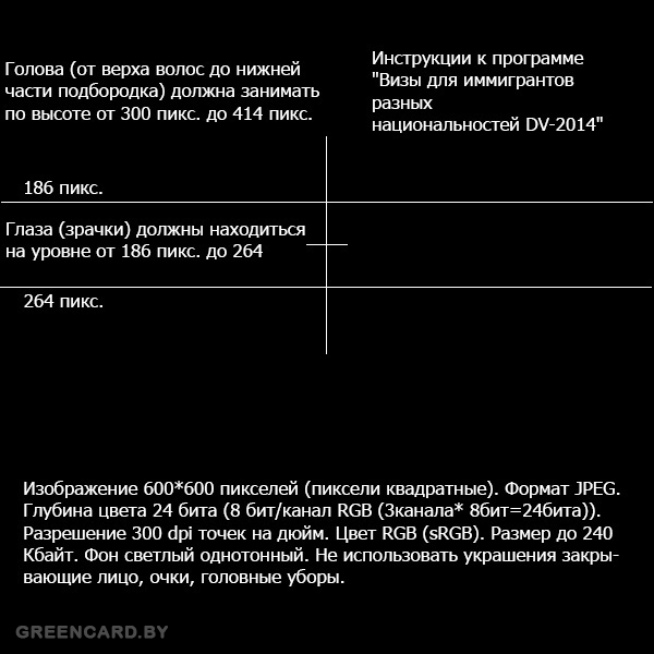 Лицо должно получиться размером от 300 до 414 пикселей. Я так и делал почти по максимуму, но не во всех случаях. Фото не должно получиться так, что это будет голова без шеи. Или наоборо до пупа. Должна быть гармония. Поэтому и дают такой зазор по лицу. Или можете ориентироваться по второй картинке. Голова (от верха волос до подбородка) должна быть подогнана под размеры крайних линий - это вычесленный средний размер головы 357 пикселей = (414+300)/2. Глаза тоже взял по среднему 225 пикселей.