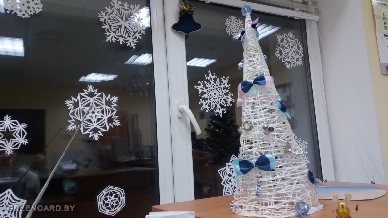 У нас каждый год начальство дает задание украшать кабинеты, коридоры, лифты. В этом году воздержались, ибо людей сократили очень много и реально некогда этим заниматься. Это вск прошлогодние штучки.