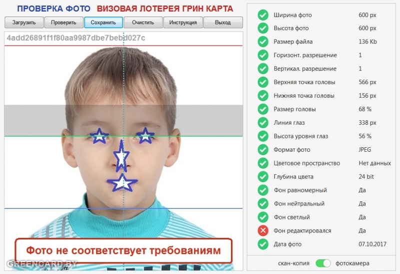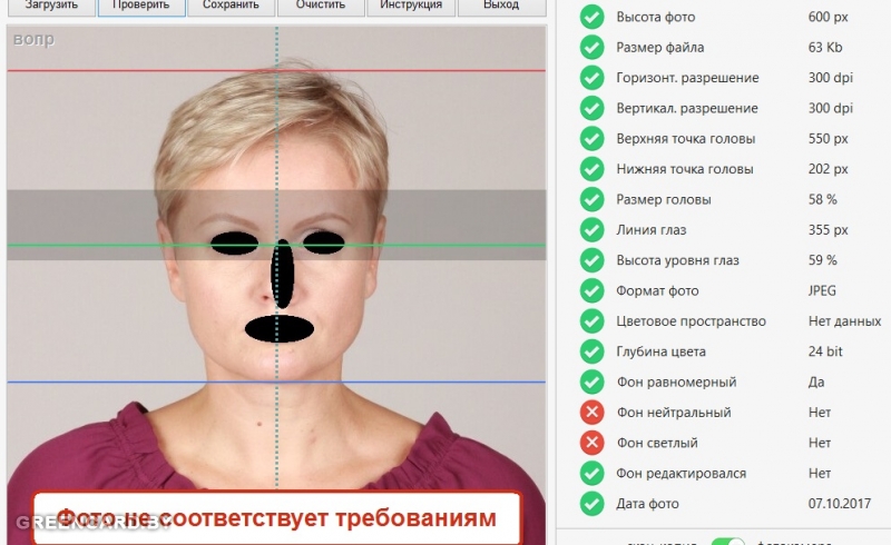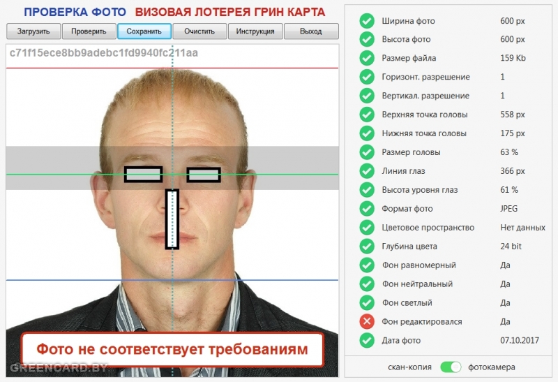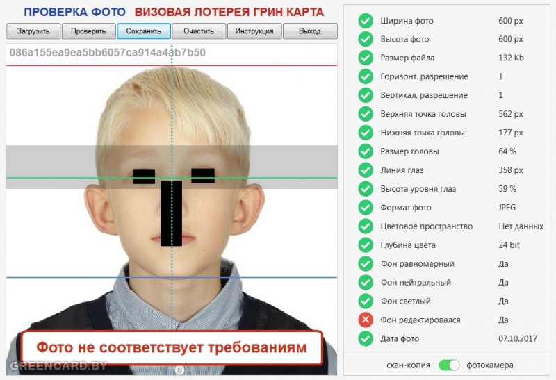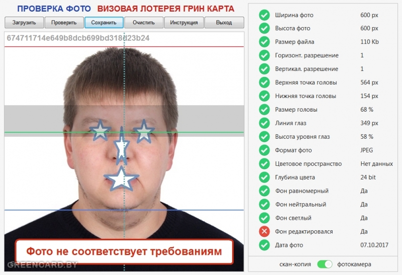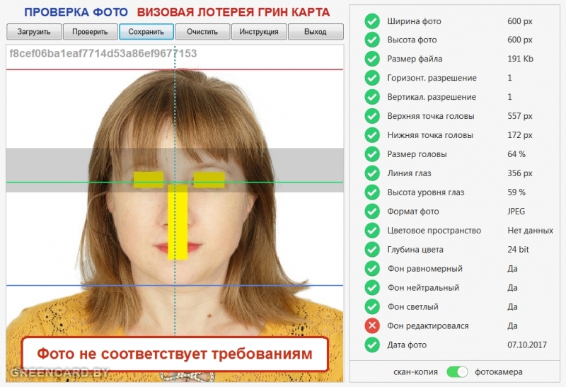 так как использовал ещё и свет люстры немного тёплый пришлось ровнять бб по ватману, а потом соответственно немного руками доводить лицо. короче, суть в том, что валидатор на первой проверке сказал, что фон неоднородный. я его чуть подкорректировал. и фото в валидаторе уже прошло. вопрос для разработчиков: каким образом работает алгоритм, определяющий редактировался фон или нет? спасибо заранее