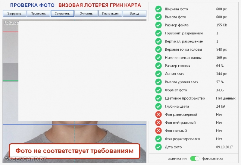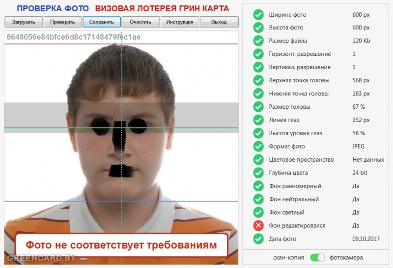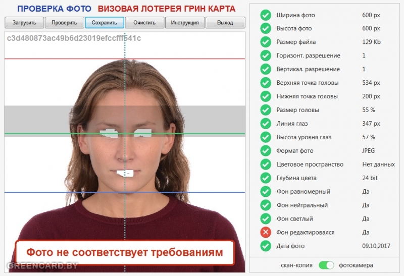 Немного технических деталей (для тех, кому это интересно): В правилах нет конкретного определения, что считать светлым фоном. Принято считать светло серым (lightgrey) цвет, значение которого в шестнадцетиричном значении >= D3D3D3 В программе, с целью обеспечить некоторый "запас прочности", выбрано в качестве допустимого порога чуть более светлое значение = DADADA. Это промежуточное значение между LightGrey и Gainsboro. Примеры цветов можете посмотреть Здесь У вас на фото есть тёмные участки фона - внизу, над плечами. В верхней части фон достаточно светлый. Вы вправе проигнорировать эти указания, если считаете, что с фоном всё в порядке. Задача программы - только указать вам на сомнительные и проблемные места, чтобы, по возможности, свести риск на нет.