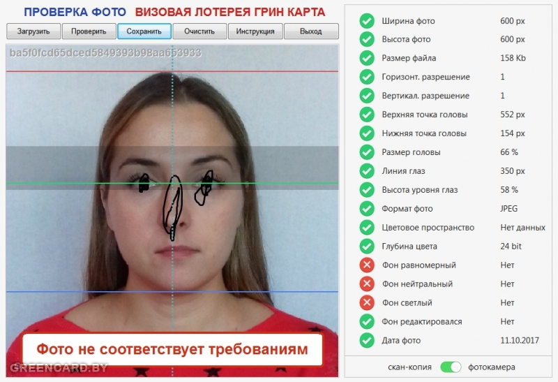 Проверил фото через утилиту, были проблемы с (нейтральный фон). Осветлил в фотошопе целиком. Утилита Astar все пункты одобрила. Но есть сомнения, не слишком ли стало светло (засвеченость). Друзья, проверьте пожалуйста. Спасибо! |