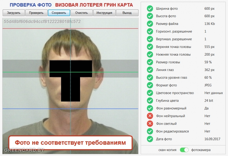 Дело в том, что я его вообще не трогал, как из отелье отдали так и загрузил. Еще серый прямоугольник не на глазах, а немного выше. Вот два скриншота, (1-вый отелье, 2-рой выкачан с заявки на сайте greencard.by (причем одобрена фотография))