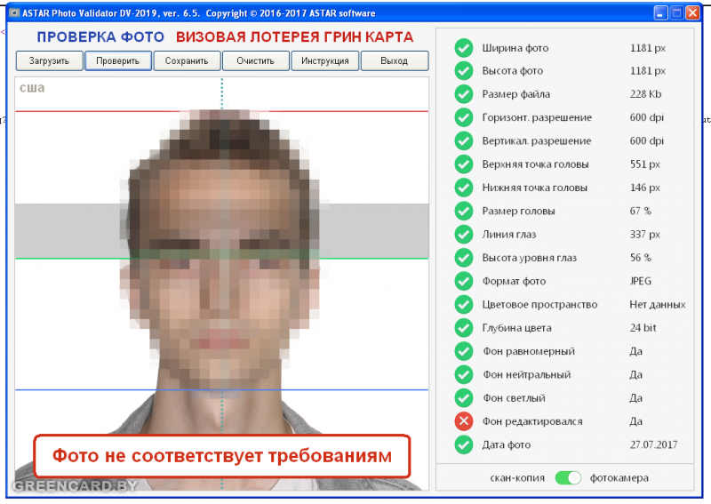 О моей программе "ASTAR Фотовалидатор" можно прочесть в теме "Пункт 7: Entrant Photograph"