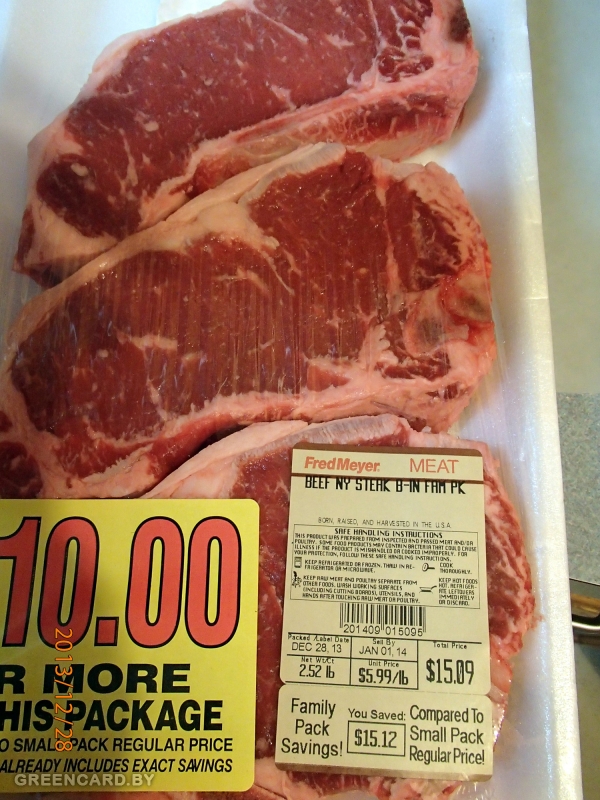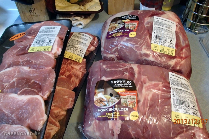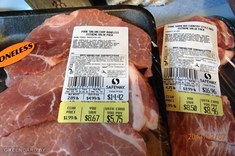 Если еду покупаете на двоих, на 2 недели, то оплата годового взноса в Костко может себя не оправдать. Упаковки хороши на семью минимум из 3 человек с хорошим аппетитом. Мясные упаковки увесистые, цена на мясо может быть чуть-чуть ниже, чем в Vons, но зато и скидки на продукты вещь весьма редкая, в то время как магазины продающие не огромными упаковками могут играют ценой в сторону понижения.